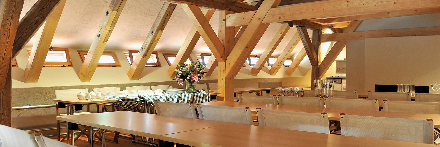 Die Tagungs-Ausstattung im Seminarbereich (Seminarraum, Küche, Sanitäranlagen) – Obergeschoss